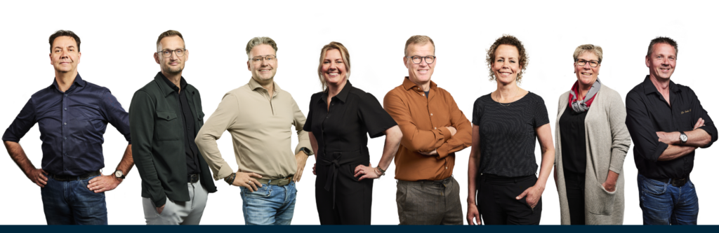 Het bestuur van Ondernemersvereniging Leeuwarderadeel (OVL) met van links naar rechts: Renze Broekens, Feike Lousma, Theun Dankert, Lia van der Schaaf, Siep Klaas Bijland, Anja Albada Jelgersma, Jannie Tadema, Simon de Vries.